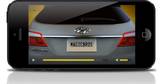 In less than 40 seconds we delivered a dynamic video rendered on the fly, incorporating data from the information that was just inputted by the user. Here you see the team name appear on the license plate of the Santa Fe. |