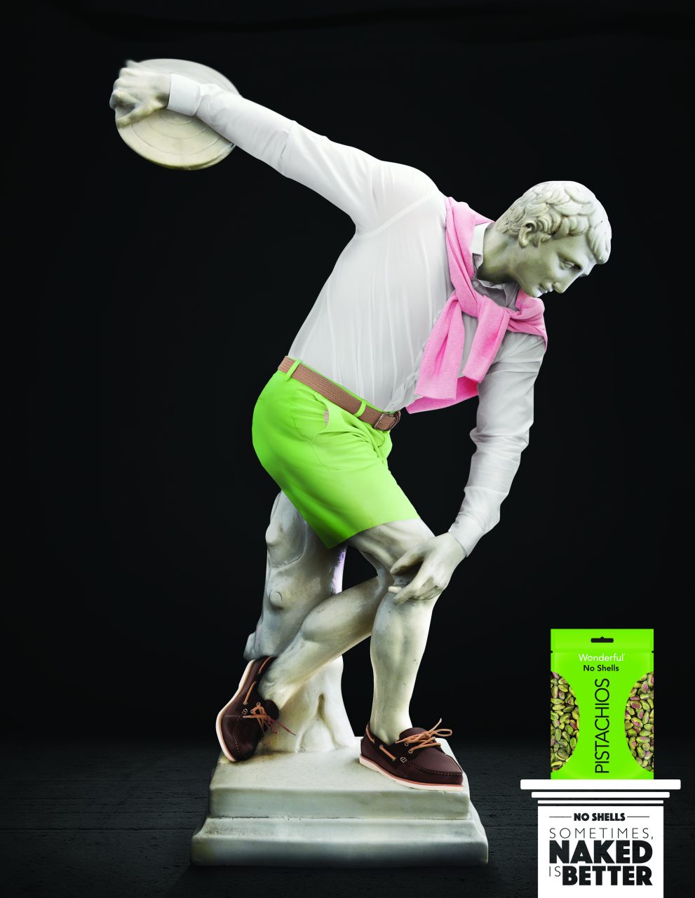 WONDERFUL PISTACHIOS NO SHELLS I think we can all agree that clothes are great and all, but sometimes naked is better. And what better way to sell Wonderful No Shells Pistachios than to celebrate nudity? Note: I was hired freelance to help concept ideas for Wonderful No Shells Pistachios. This is one of the ideas that I helped develop and sell through to the client. Once the idea was sold, this execution was created by the in-house creatives. See below for my original comps that sold the idea. AD Andrew Kapamajian Copywriter Alan Snider ECD Darren Moran |