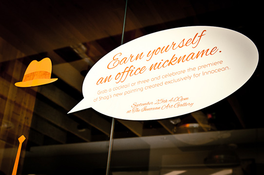 WINDOW CLINGS As an extension of the posters, we created window clings with speach bubbles promoting the party that people could interact with. Winner OC Addy: Advertising Industry Self Promotion Collateral: Silver. Winner OC Addy: Advertising Industry Self Promotion Non-traditional: Bronze. |