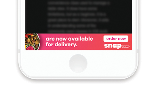 | SNAP KITCHEN BOX WITH BENEFITS We created the healthiest delivery packaging of all time for Snap Kitchen, who make meals for busy people who want to be healthy. These suckers were so seductive that they sold out on the first day. CREDITS AD: Andrew Kapamajian CW: Jeff Kwiatek ECD: David DeRoma |